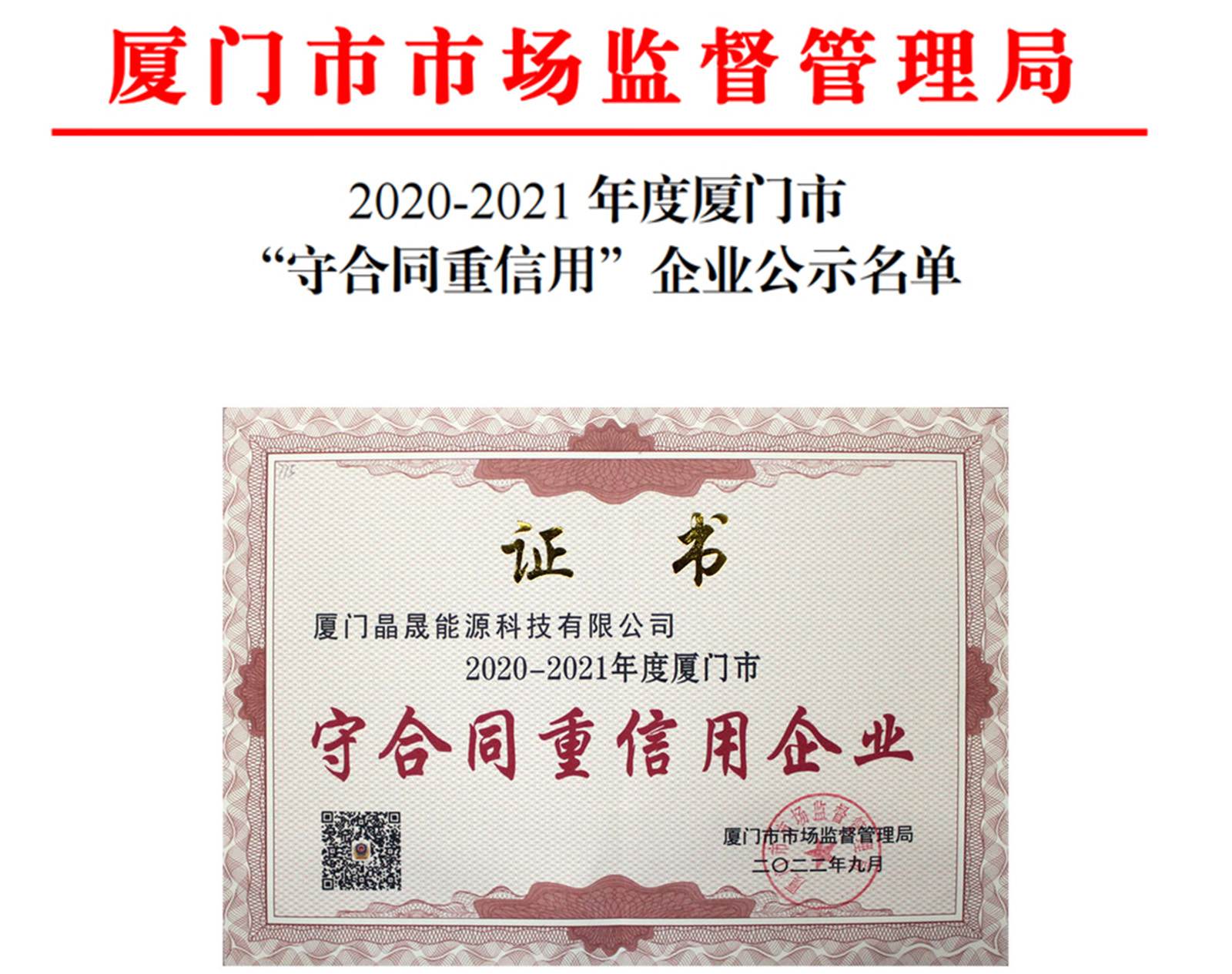 O Solar First Group recebeu o certificado "Empresa Honrada por Contratos e Créditos" 2020-2021 do Departamento de Supervisão e Administração do Mercado de Xiamen. Este prestigioso reconhecimento segue de perto a recente certificação de Empresa Nacional de Alta Tecnologia da empresa.