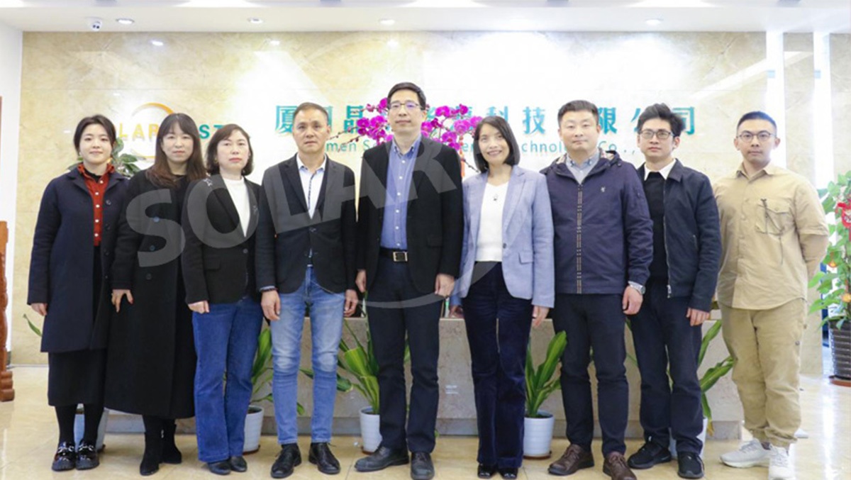 Em 2 de fevereiro de 2023, Grupo Solar First acolheu uma delegação de Tecnologia de energia Co. de Xiamen Haihua, Ltd. liderado por Jiang Chao Yang (Presidente, Secretário da Seção do Partido e Gerente Geral), acompanhado por Liu Jing (Diretor Financeiro), Dong Qianqian (Gerente de Marketing) e Su Xin Yi (Assistente de Marketing). Você cantando (Presidente), Zhou Ping (Director Geral), Zhang Shaofeng (Gerente Geral Adjunto) e outros representantes do Solar First Group organizaram a visita.