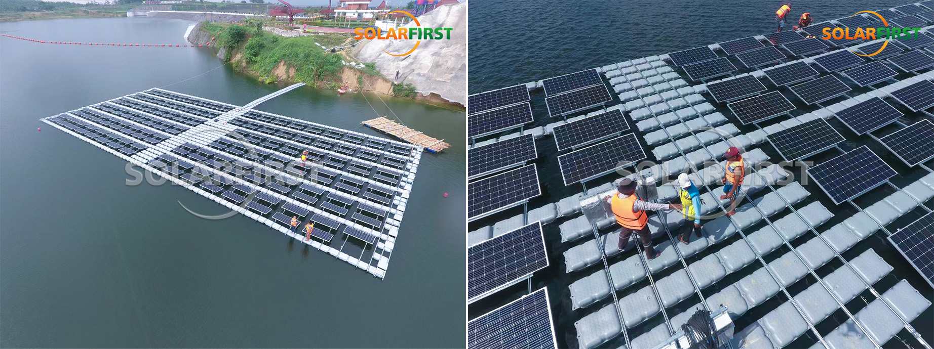 O primeiro projeto de suporte flutuante do Solar First Group na Indonésia está prestes a ser bem-sucedido. Trata-se de um projeto fotovoltaico flutuante do governo indonésio, com conclusão prevista para novembro de 2022 (o trabalho de projeto começou em 25 de abril), que adota a nova solução de sistema de suporte flutuante SF-TGW03, desenvolvida e projetada de forma independente pelo Solar First Group.