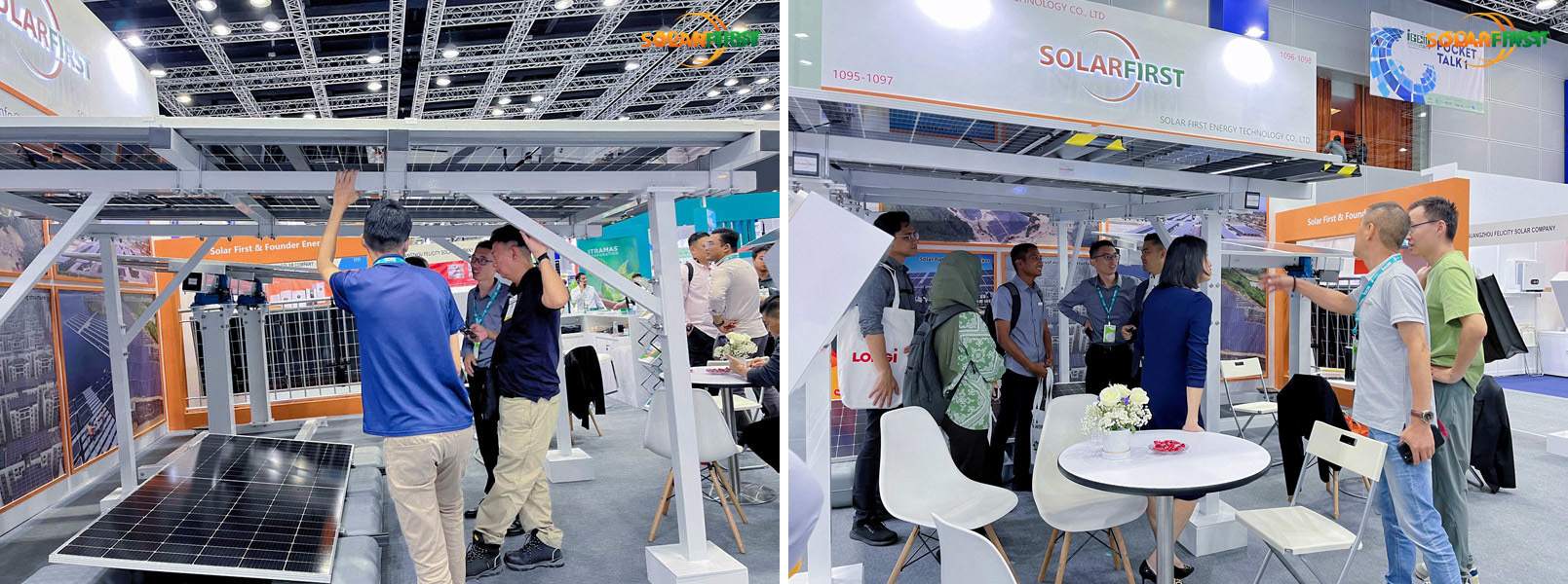 Nesta exposição, a Solar First apresentou sua série de painéis fotovoltaicos flutuantes TGW, sistemas de rastreamento Horizon, estruturas de montagem de painéis fotovoltaicos em telhados, abrigos solares à prova d'água para carros e soluções de montagem em varandas no estande 1095-1098 do Pavilhão 1 do Centro Internacional de Comércio e Exposições da Malásia. A empresa atraiu visitantes nacionais e internacionais, tanto novos quanto antigos, por meio de produtos inovadores e serviços premium.