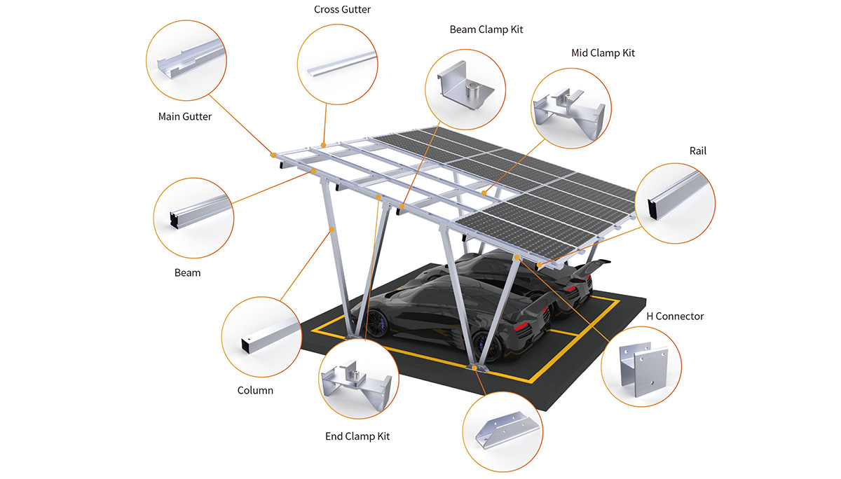 Aproveite a energia solar com nossa cobertura solar de alumínio de alta resistência — uma estrutura eficiente que oferece estacionamento coberto e gera energia limpa. Adequado para uso residencial e comercial, este sistema oferece um design à prova d'água que direciona eficazmente a água da chuva para fora dos vãos dos painéis através de tubos e cortadores de drenagem integrados, garantindo que os veículos permaneçam protegidos do sol, vento e chuva.