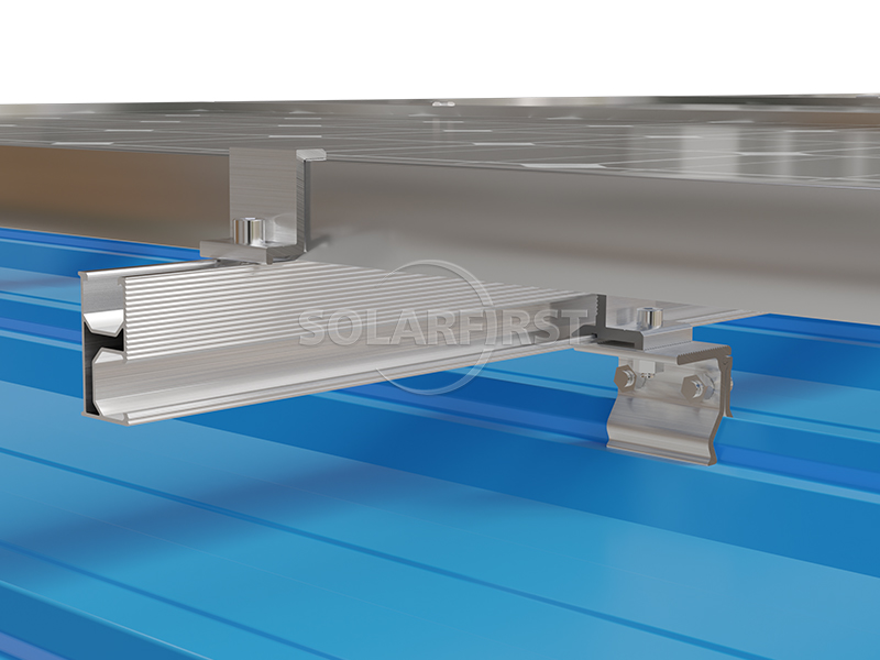 O sistema utiliza componentes e trilhos leves de suporte de montagem em telhado de alumínio que minimizam a carga adicional sobre a estrutura subjacente do telhado. Os suportes de telhado com grampos solares angulares, especialmente projetados, são projetados para acomodar diversos perfis de telhas angulares, garantindo uma fixação segura sem penetração no telhado. Para maior flexibilidade, o grampo de telhado pode ser combinado com suportes em L para obter a elevação e o posicionamento ideais do módulo solar.