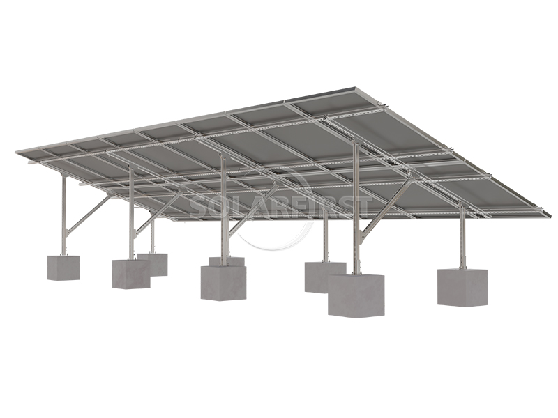 As vigas e suportes principais são pré-montados na fábrica para minimizar a mão de obra no local e agilizar a instalação. A placa de base com design exclusivo permite ajuste de altura e posicionamento frontal e traseiro, proporcionando flexibilidade para adaptação a diferentes terrenos e requisitos de layout de módulos.