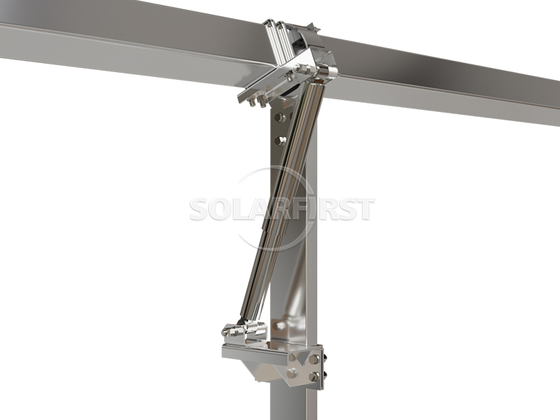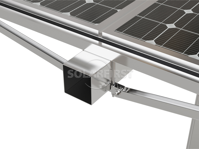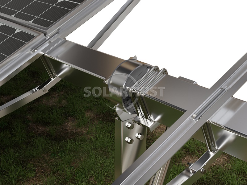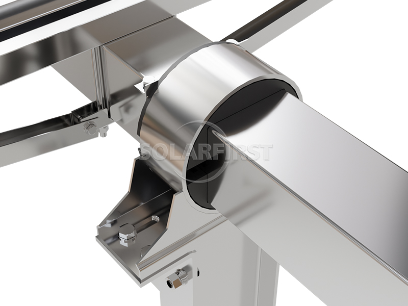 A estrutura principal é feita de aço galvanizado a quente ou revestido com Zn-Al-Mg, com espessura média de revestimento ≥80 μm. Ela utiliza um sistema de acionamento giratório e suporta vários tipos de fundação, incluindo estacas de concreto armado (PHC), estacas moldadas no local e estacas de aço.