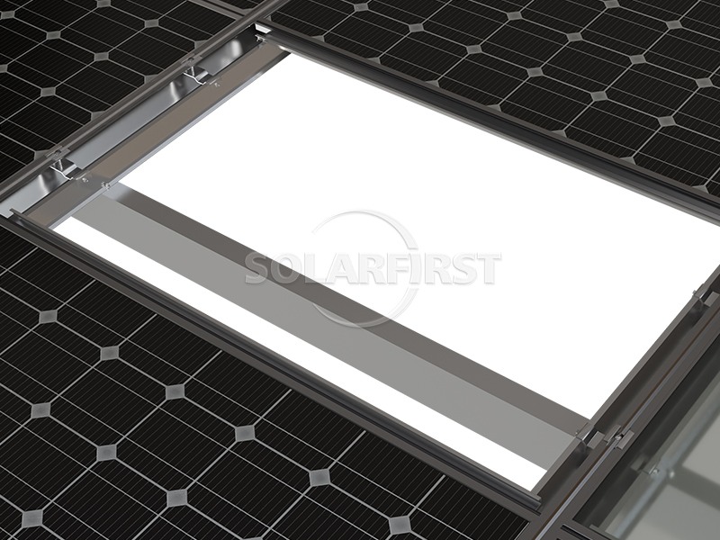 Com um design avançado à prova d'água, o sistema garante 100% de proteção contra vazamentos, canalizando a água da chuva através dos vãos entre os painéis para calhas e tubulações de drenagem, evitando a entrada de água no espaço abaixo. A estrutura do telhado suporta placas antiderrapantes opcionais para passarelas de manutenção seguras e painéis transparentes para iluminação natural, combinando praticidade com estética.