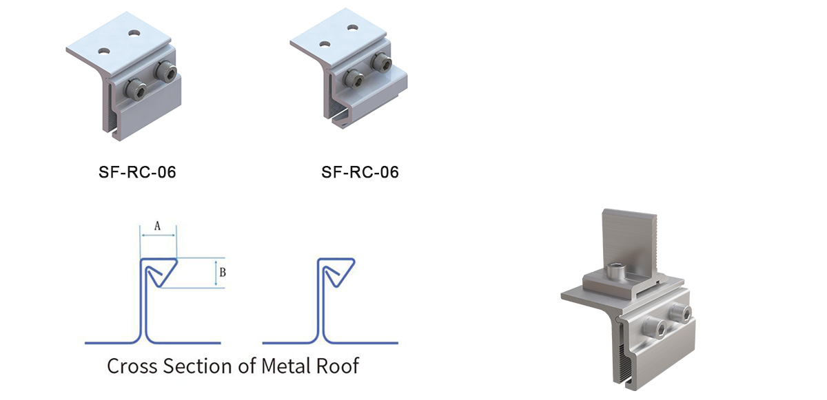 O Suporte de Telhado Metálico SF com Grampos de Telhado com Costura Vertical oferece uma solução especializada de montagem solar para telhados metálicos com costura vertical, projetada especificamente para sistemas de cobertura metálica com costura vertical e costura horizontal. Este sistema de racks não penetrantes oferece uma solução de montagem segura que preserva a integridade do telhado, garantindo instalação rápida e economia.